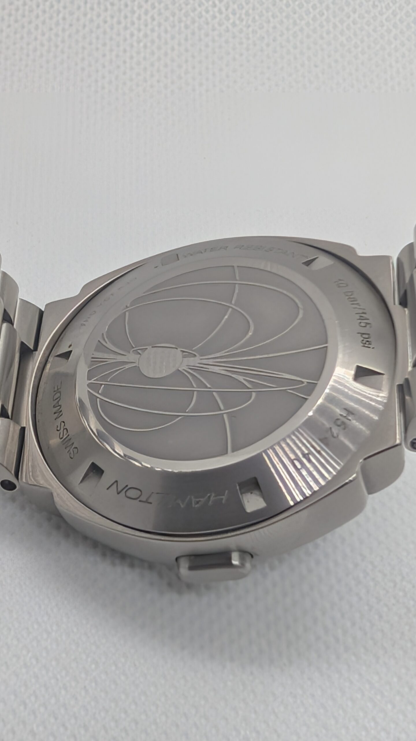 The Hamilton H524140 (PSR) is a modern reissue of the iconic 1970s Pulsar, featuring a retro-futuristic stainless steel case, hybrid LCD/OLED green digital display, and a reliable quartz movement. It offers a nostalgic design with modern durability, including sapphire crystal and 100m water resistance.
